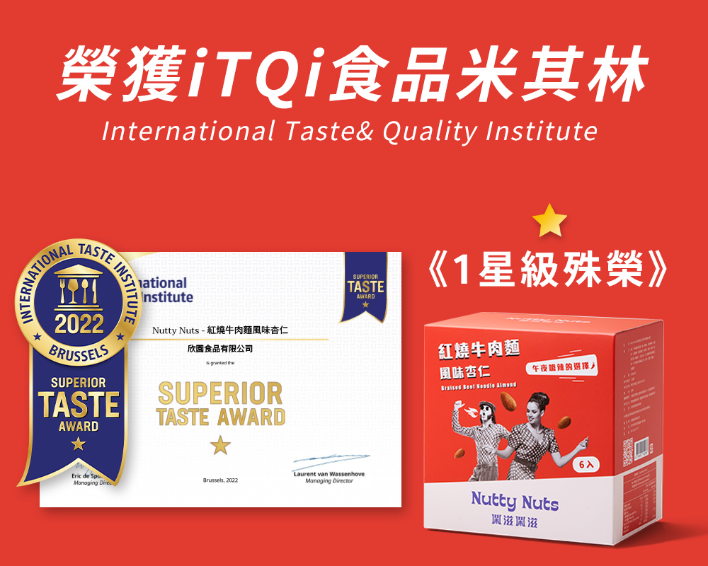 ✦「紅燒牛肉麵風味杏仁」的勁辣享受,也榮獲 iTQi 星級肯定!